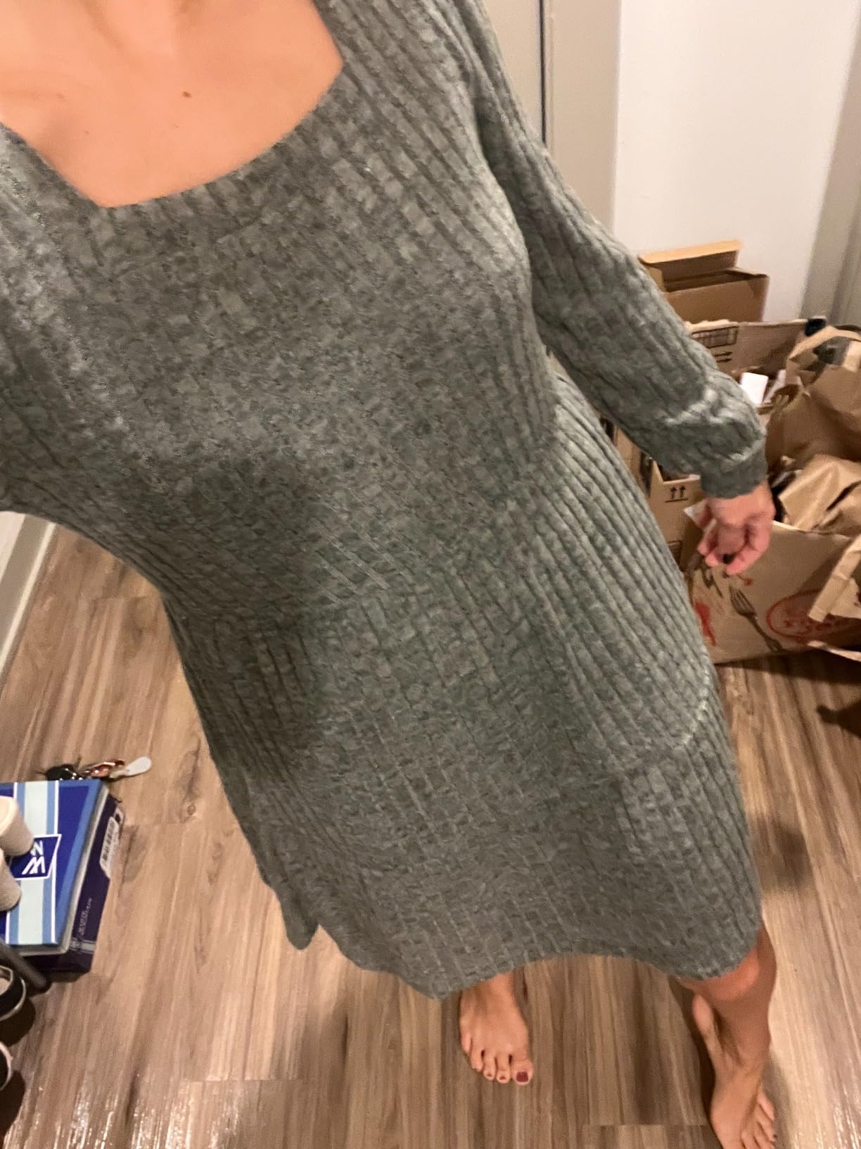 Versatile, cute, soft, flattering, true to size. Bought for Easter and church this spring, I want to wear a dress but be warm. Bought some nude leggings to wear underneath. Will likely get more colors. I’m 5’5 a size 12 and got a large.