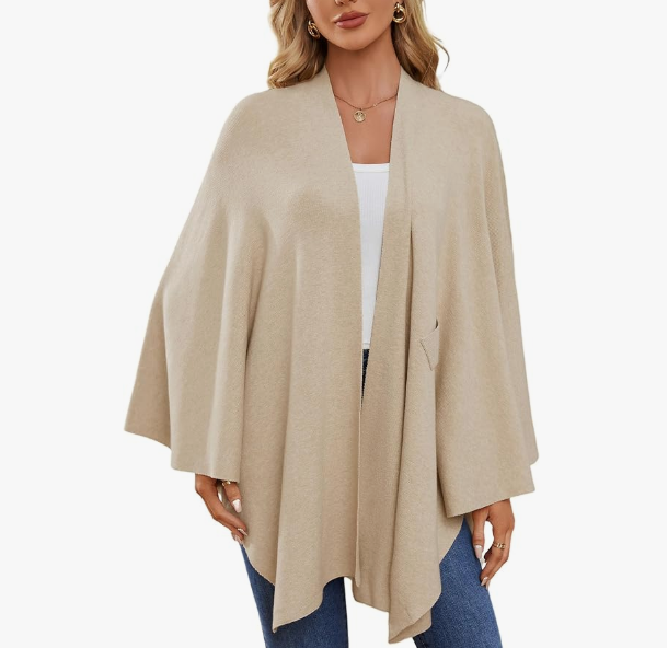 And here’s another win: there’s a loop on the chest, plus that cross-front design? It adds such a nice touch of sophistication to the classic poncho shape. This thing drapes so beautifully too—gives you a super flattering, chic look that goes from casual outings to dressier spots without skipping a beat.